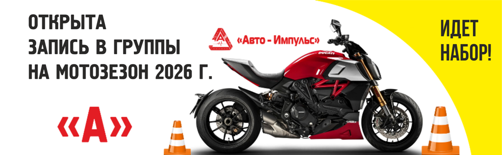 Проводится набор на курсы по обучению на категорию «А» во всех филиалах автошколы «Авто-Импульс». Обучение проходит на оборудованных площадках автошколы с опытными инструкторами на новых импортных мотоциклах.